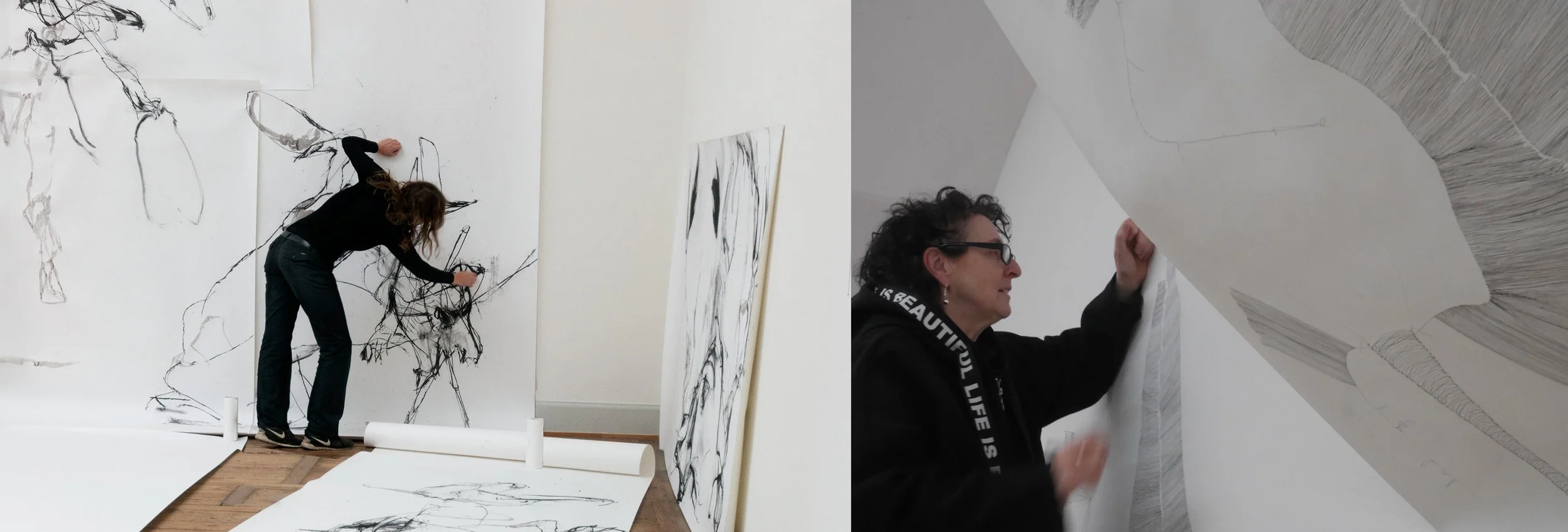 Über einen Zeitraum von 4 Wochen entwickeln die beiden Künstlerinnen Claudia-Maria Luenig und Anna Rudolf ihre individuellen Strategien des prozesshaften Zeichnens weiter, mit dem gemeinsamen Ziel, sich zeichnerisch und räumlich anzunähern. Inspiration, Austausch und das Diskutieren gemeinsamer Arbeitsweisen stehen im Zentrum dieses Prozesses. Der Ausstellungsraum puuul wird dabei zur Zeichenfläche.