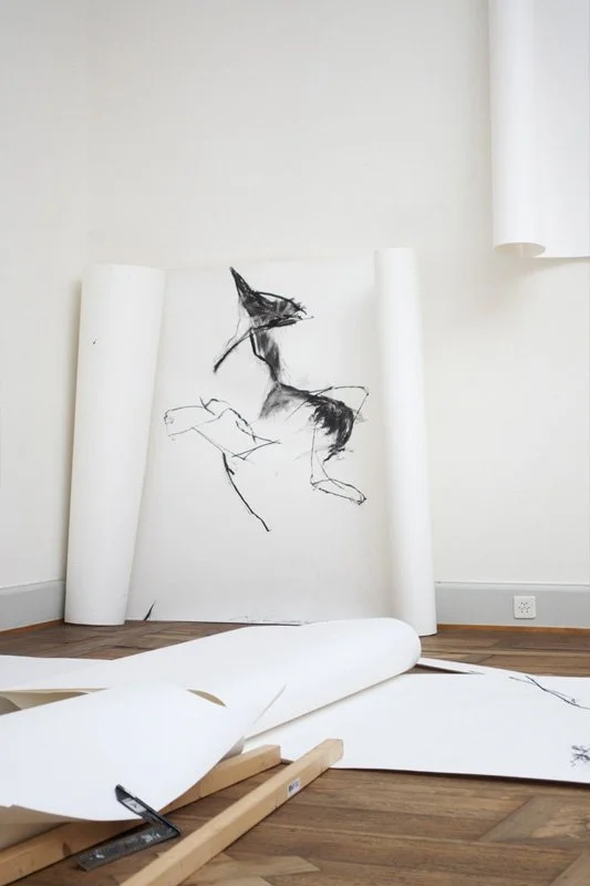 Ze begon aan een werkproces dat geen aanspraak maakte op voltooing. Terwijl ze aan het werk was, ontving ze ook publiek. Dan hield ze op met tekenen en ging in gesprek.